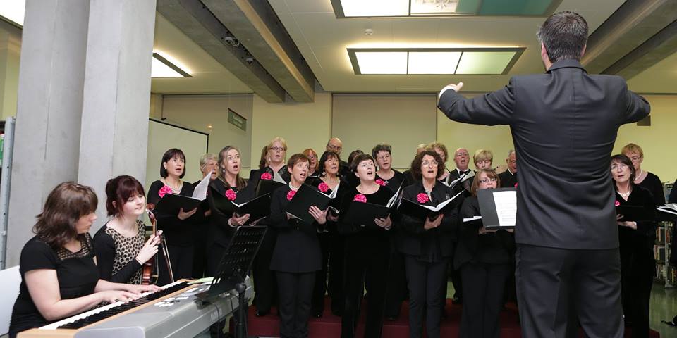 We sang at the US Civil War exhibition at the Johnston Memorial Library, Cavan on 5th August 2015. Acompanied by Eileen Tackney on keyboard, We sang many songs evoking the era - Wake Nicodemus, We are Coming Father Abraham, When Johnny Comes Marching Home, Just Before the Battle Mother, Dixie and The Battle Cry of Freedom. Soloists were Brian McKeeven (bass) and MArtina Lee Boyle (soprano). Musical Director Paul joined the Aedine Browne (alto), Mary Sullivan (soprano) and Martine Lee Botle (soprano) for a haunting rendition of Shenandoah, joined ny guest violinist Amy Kelly.