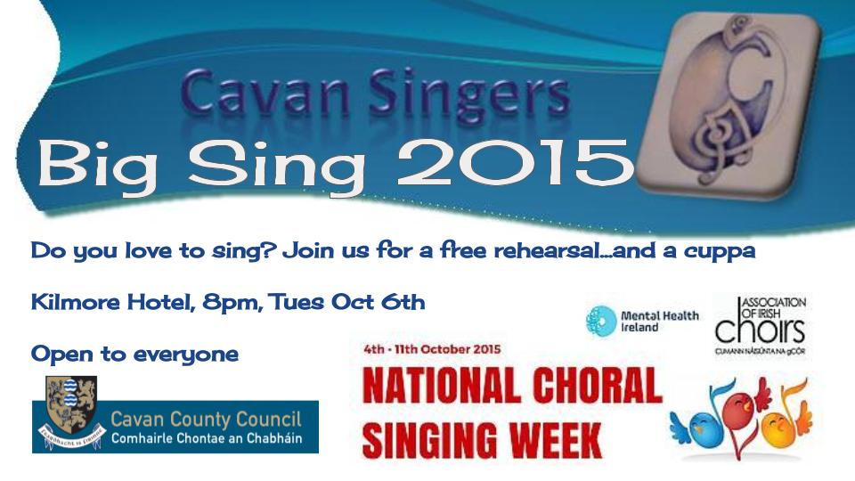 We are hosting a Big Sing at our open rehearsal next Tuesday, as are many other AOIC choirs around the country. All who love to sing are welcome to join us for a song and a cuppa. This is to celebrate Mental Health week and Choral Singing Week. Many thanks to Cavan County Council Community Office for supporting us in this venture.
